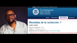 États-Unis, mardi 23 décembre 2025 – Selon les bases de données des services d’immigration américains, Carel Pedre est actuellement détenu par l’ICE (U.S. Immigration and